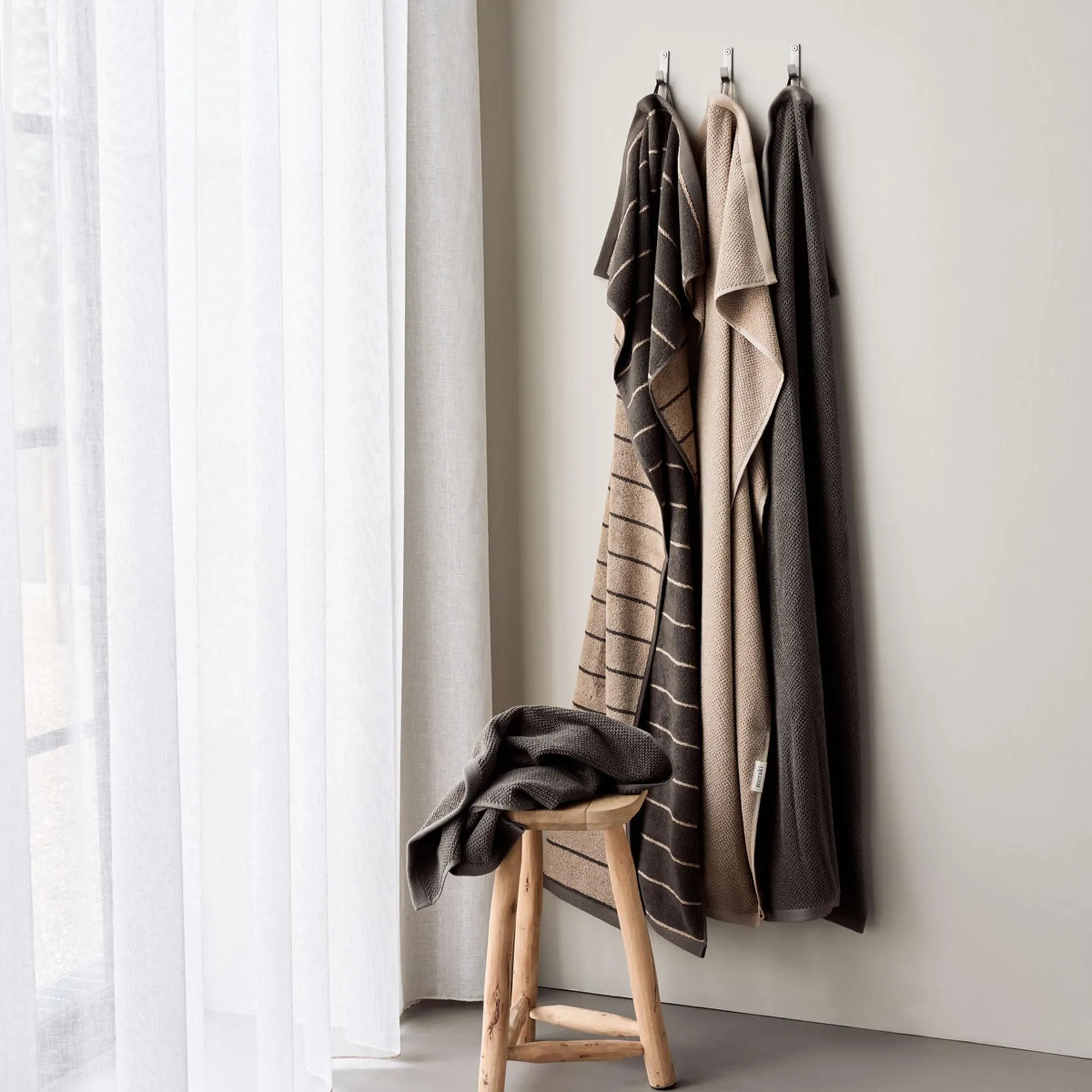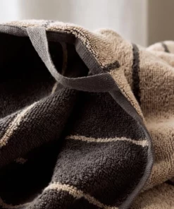 Du kannst mit neuen Handtüchern im Bad für eine ganz neue Stimmung sorgen. Mit der Kombination aus grünen und sandfarbenen Streifen in einem buntgewebten Design sorgt das Stripe-Handtuch von Meraki im Bad für eine gemütliche Atmosphäre.