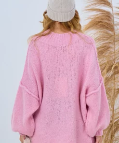 Kuschelig weicher Pulli mit breitem Bund am Rundhalsausschnitt. Der Pulli wird weit und locker getragen, die Bündchen an den Ärmeln sind verhältnismäßig kurz und eng. Der Schriftzug Saint ist vorne aufgeflockt. Der Pulli hat teilweise außenliegende Nähte.