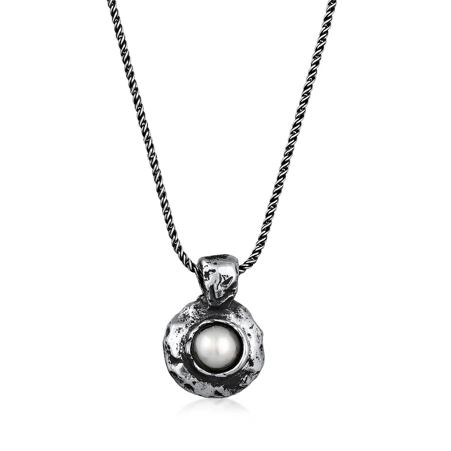 Die Mutiara Pearl Halskette ist aus oxidiertem 925 Sterling Silber gefertigt und wird durch eine echte wunderschöne Süsswasser Barockperle gekennzeichnet.