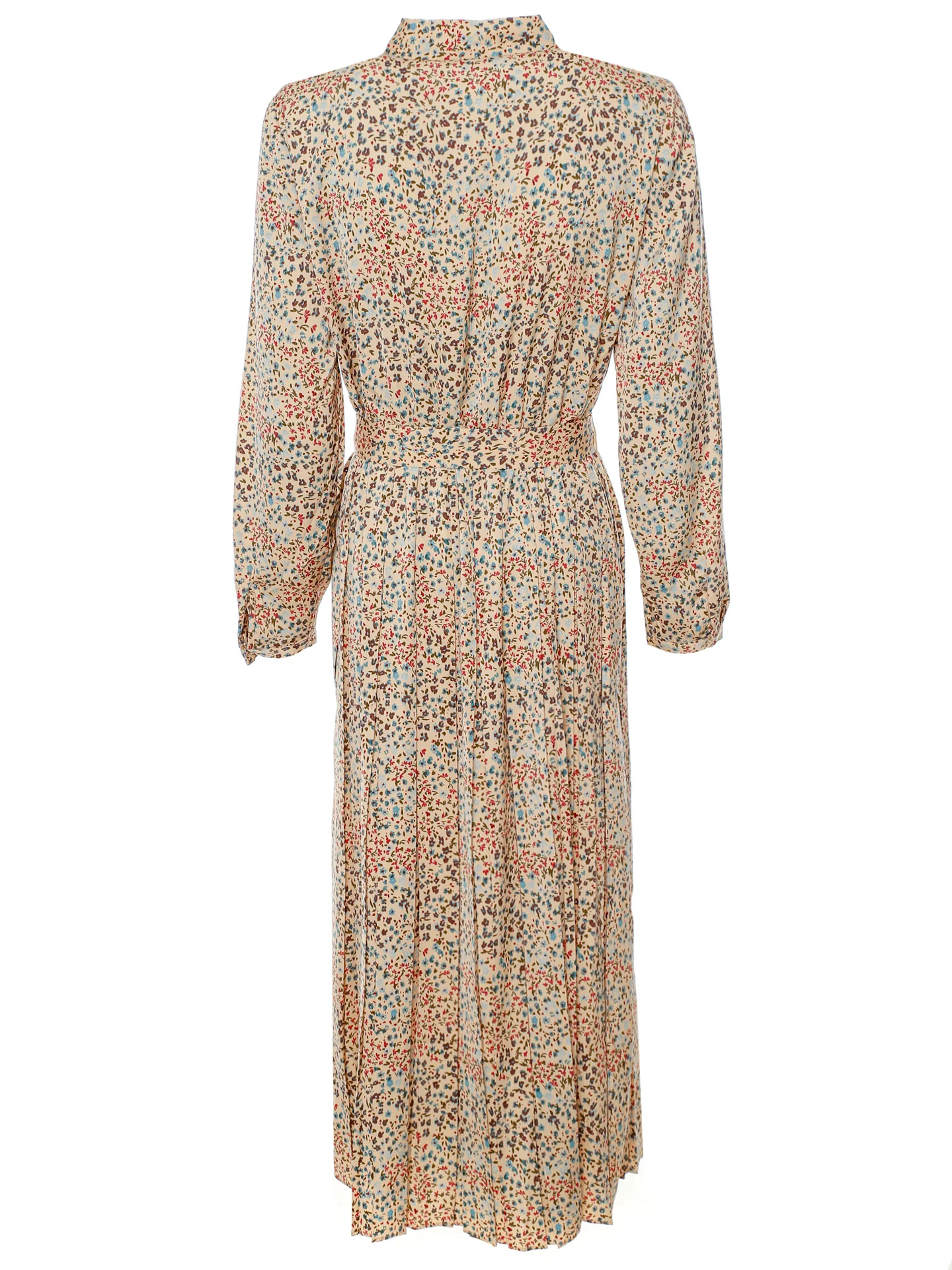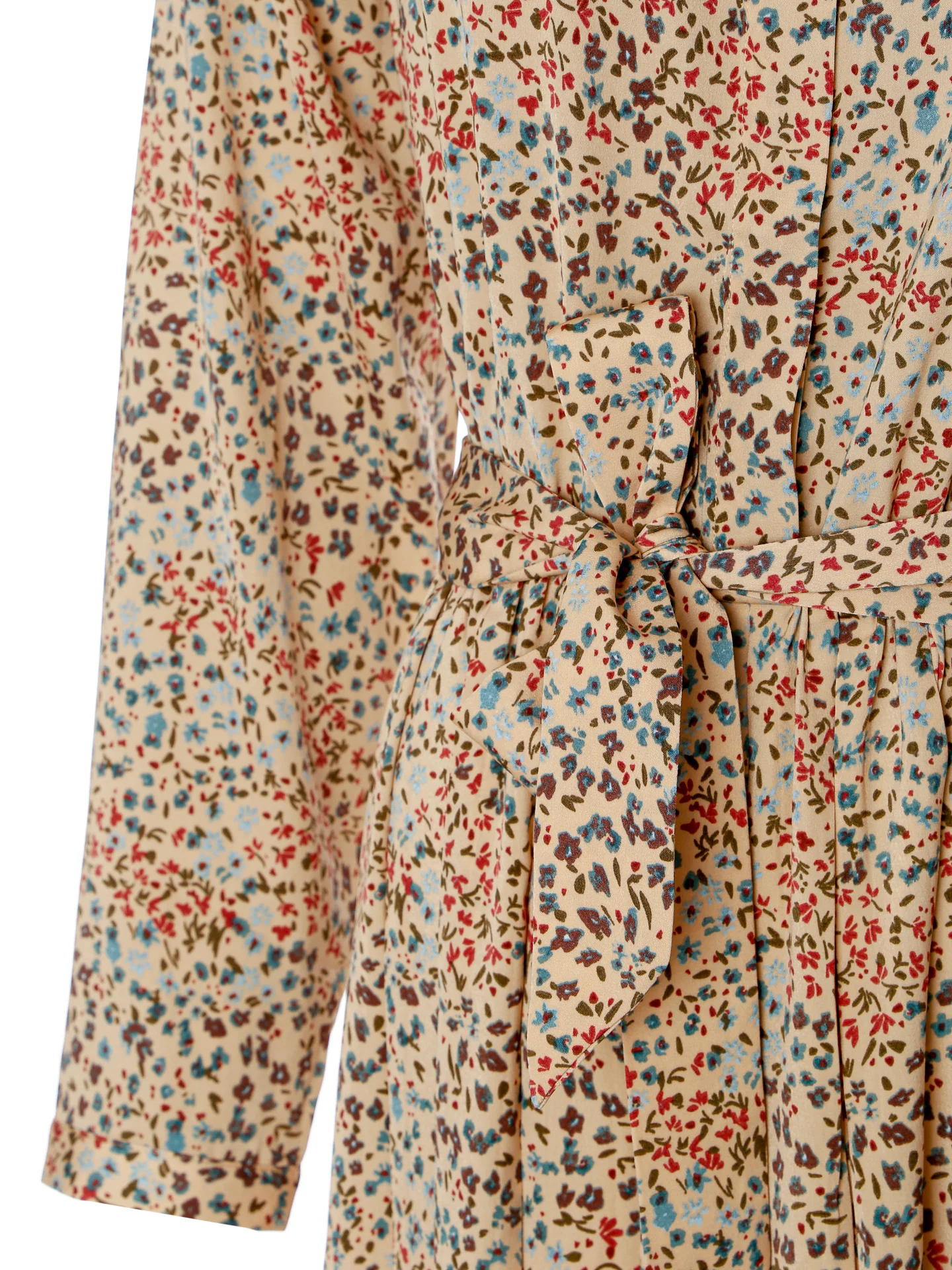 Langärmliges Maxikleid mit Knopfleiste und Hemdkragen,Plissierte Struktur mit floralem all-over Print,Elastisches Taillenband mit Gürtel,A-Linie mit lockerer Passform,Länge: Wadenlang