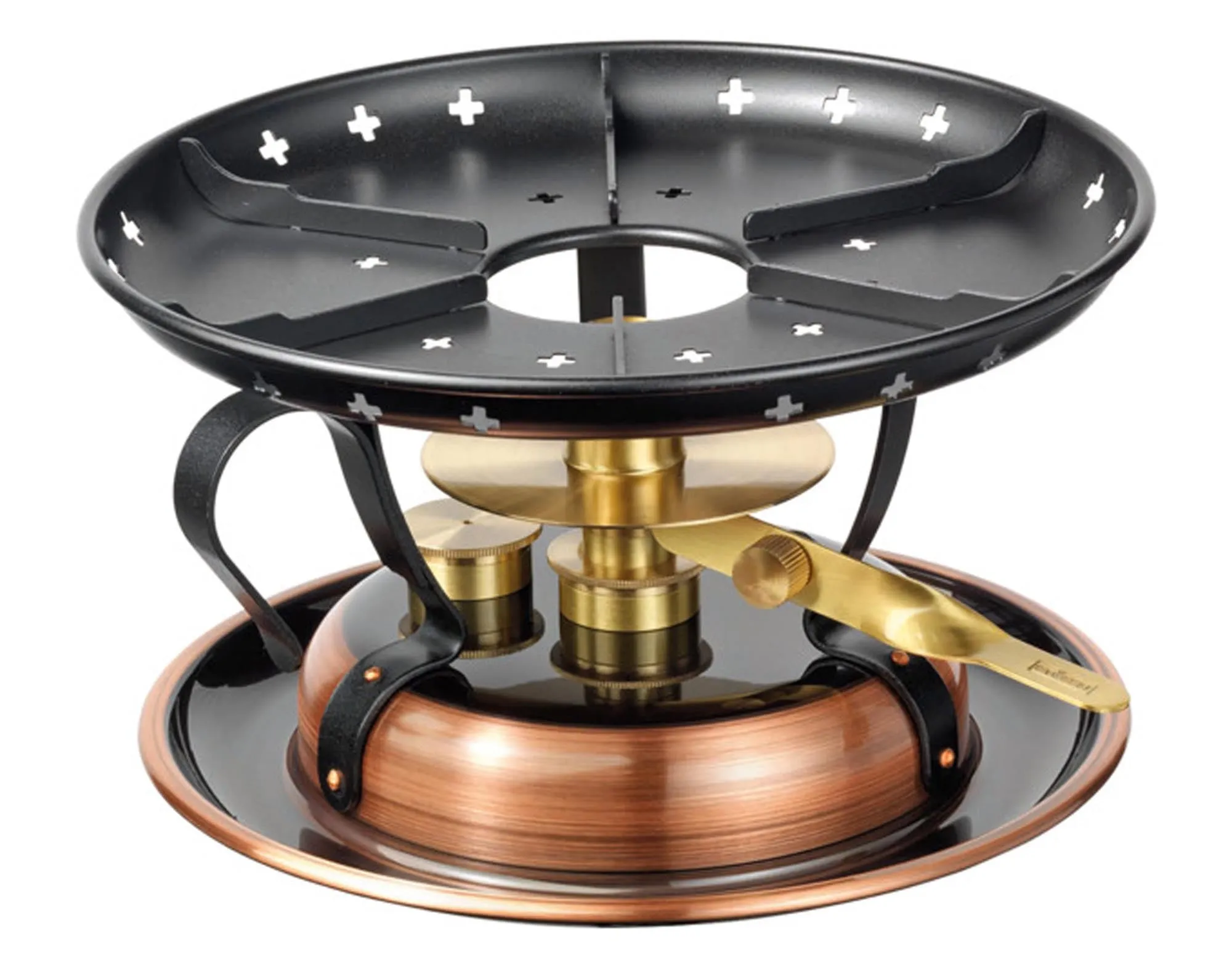 Dank seiner klassischen Form und der hochwertigen Verarbeitung fügt sich das Rechaud Classic Kupfer harmonisch in jede Tischdekoration ein und sorgt für ein unvergessliches kulinarisches Erlebnis. Geniessen Sie die Geselligkeit und den Genuss von Fondue und Raclette in stilvollem Ambiente mit diesem exquisiten Rechaud von STÖCKLI.