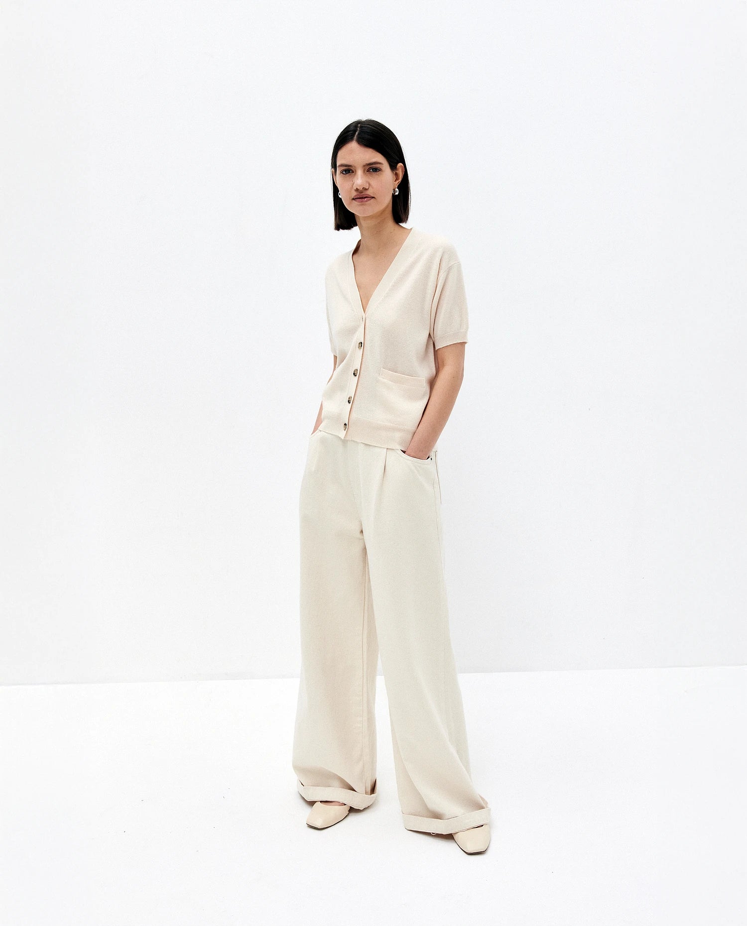 Woll-Mischung Strickjacke in Creme – Gerade Passform