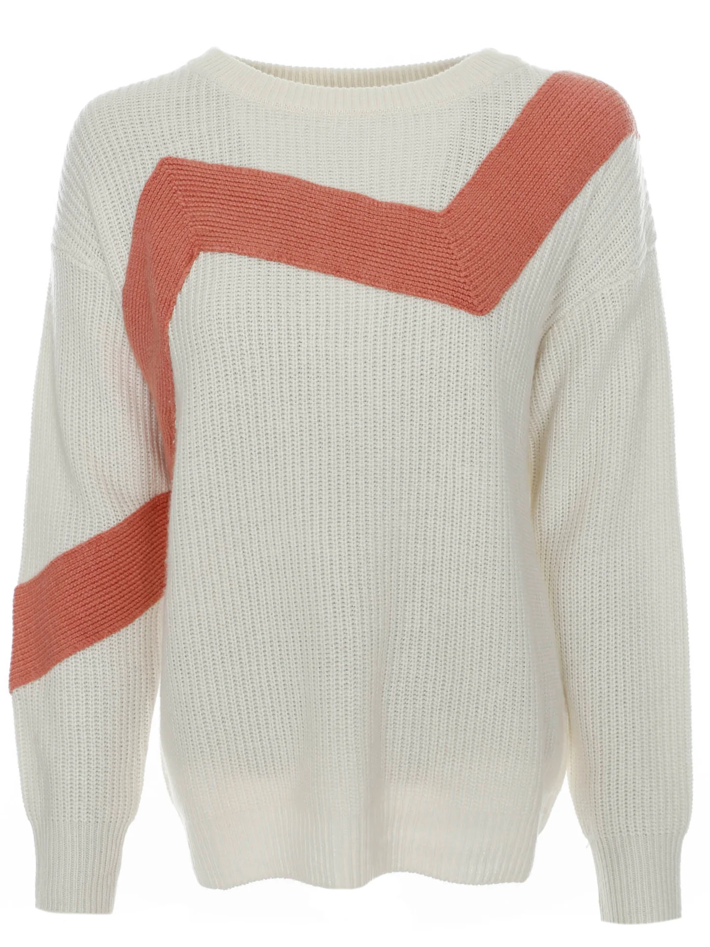 Strickpullover mit Rundhalsausschnitt,Rippbündchen am Ausschnitt sowie am Bund und am Armabschluss,Kontrastierendes lachsfarbenes ZigZag Muster auf der Vorderseite,Leicht überschnittene Schulterpartie,Normale Passform,Länge: Hüftlang
